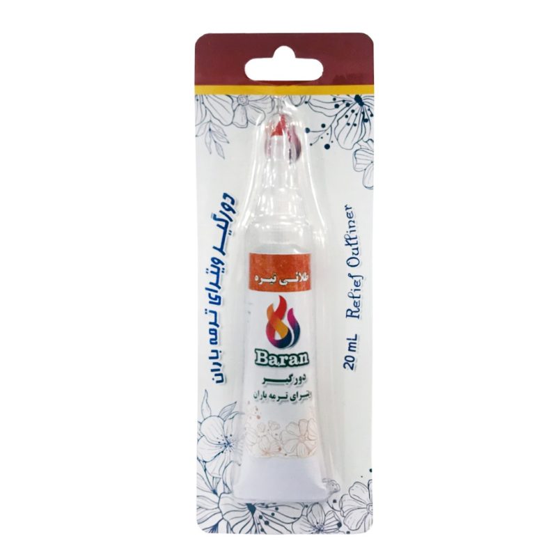 اگر بخواهید برای نقاشی روی شیشه از رنگ های شفاف استفاده کنید به دلیل رقیق بودن این گونه رنگ ها در ابتدا باید خطوط اصلی طرح مورد نظرتان را با استفاده از دورگیر بر روی شیشه بکشید و سپس فضای بین آنها را با رنگ پر کنید. دورگیر (لاینر) ها به صورت ساده، متالیک و اکلیلی در بازار وجود دارند، خمیر دورگیر باران، بر روی شیشه، سرامک، چوب و پلکسی قابل استفاده است، این خمیر بر پایه ی تینر ، بصورت تیوپی و به رنگ آبی صدفی است، حجم هر تیوپ 20 میلی لیتر است.